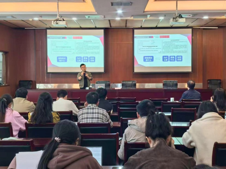 培训围绕“课程教学全流程要点分析”展开,从痛点与学情研判、教学目标确定,到教学设计与评价进行系统讲解。内容涵盖通过观察与材料分析识别学生需求;依据“知识—能力—素质”设定教学目标并遵循ABCD原则清晰表达;构建课程思政资源地图并采用故事、图片、视频等多样化呈现方式;在实施中运用问题导入与混合式教学提升参与度;在评价中除知识考核外加入思政柔性评价、课后问卷和量表工具,形成可反馈、可改进的教学闭环。吕帅副教授结合其课程建设经验,深入解析“课程画像—政策对标—智慧课程”的实践路径,为教师提供清晰、可操作的课程思政创新思路。