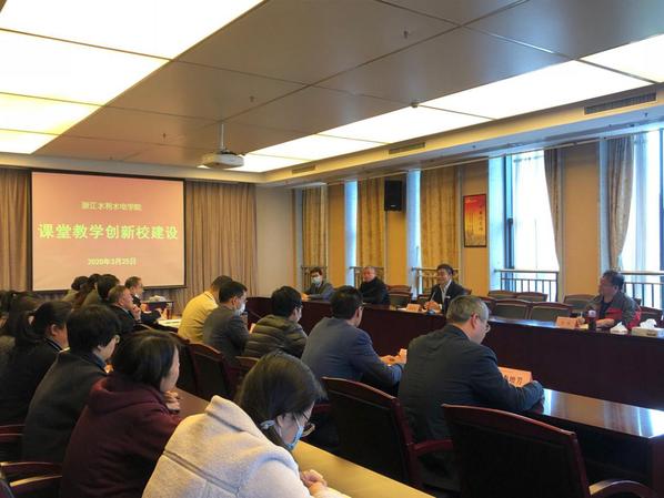 为加强应用本科建设,更好地推进浙江省课堂教学创新建设,着力提高教师课堂教学能力,3月25日上午,学校在教学科研综合楼407会议室召开落实课堂教学创新校建设工作会议。会议由副校长徐金寿主持,教务处、各单位教学负责人和教学秘书参会。